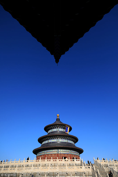 ??2017年12月22日,藍(lán)天下的北京天壇。