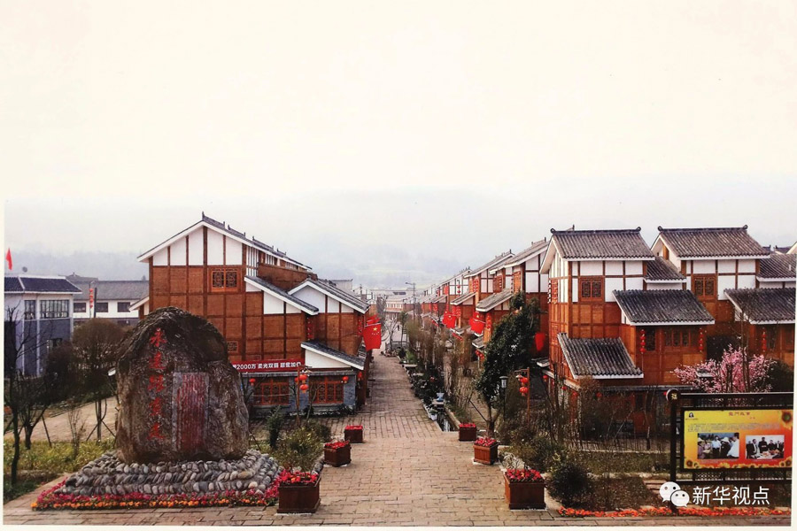 震中青龍場村,一排排小樓整齊排列,村口矗立的感恩石上鐫刻著“永遠(yuǎn)跟黨走”5個大字。