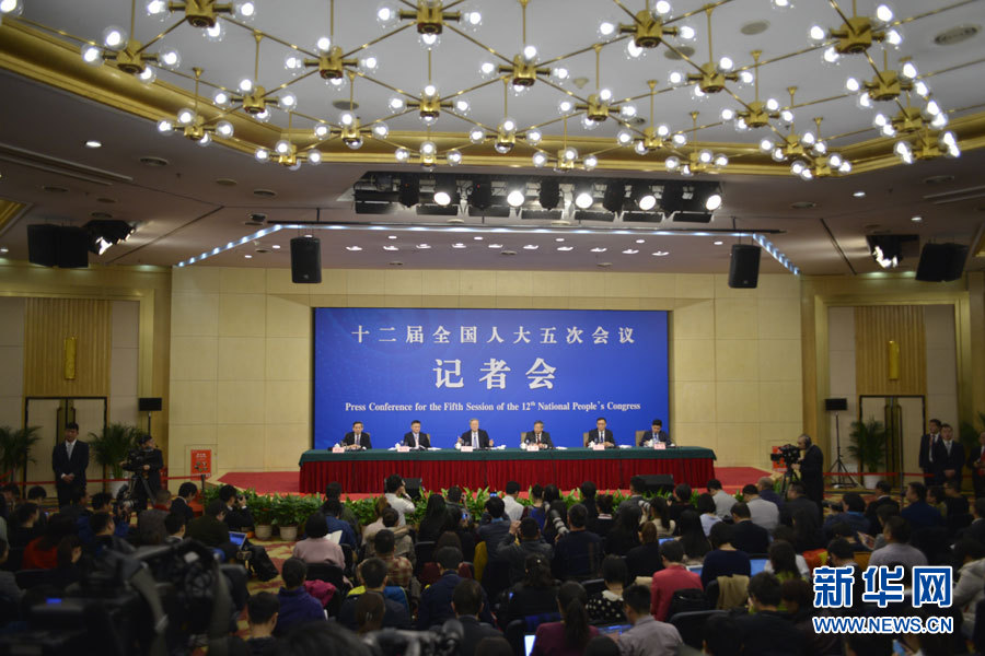 3月10日,十二屆全國人大五次會議新聞中心舉行記者會,邀請中國人民銀行行長周小川、副行長易綱、副行長兼國家外匯管理局局長潘功勝、副行長范一飛就“金融改革與發(fā)展”的相關問題回答中外記者的提問。圖為記者會現場。新華網/中國政府網 孫韜 攝