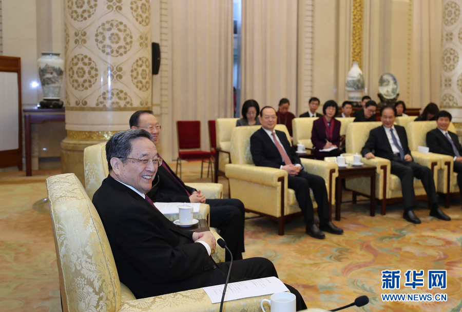 ??? 3月13日,中共中央政治局常委、全國(guó)政協(xié)主席俞正聲在北京人民大會(huì)堂看望參加全國(guó)政協(xié)十二屆五次會(huì)議新聞報(bào)道工作的中央主要新聞媒體負(fù)責(zé)同志和記者代表,向參加大會(huì)報(bào)道的新聞工作者表示誠(chéng)摯慰問(wèn)和衷心感謝。新華社記者 鞠鵬 攝