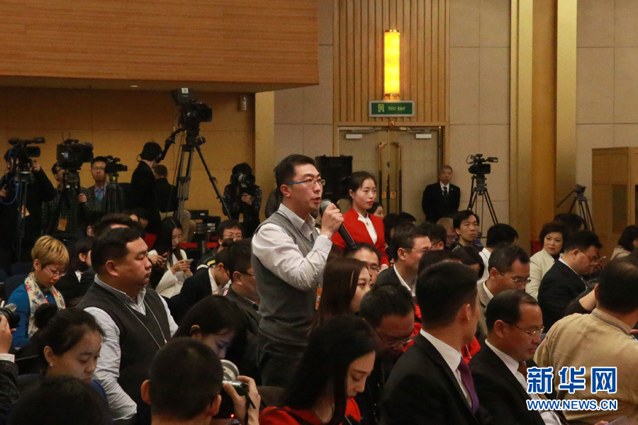 3月14日,十二屆全國人大五次會議新聞中心舉行記者會,邀請國家質(zhì)檢總局局長支樹平、副局長兼國家認(rèn)證認(rèn)可監(jiān)督管理委員會主任孫大偉、國家標(biāo)準(zhǔn)化管理委員會主任田世宏就“質(zhì)量提升”的相關(guān)問題回答中外記者的提問。圖為中國食品安全報記者提問。新華網(wǎng)/中國政府網(wǎng) 傅義洲 攝?