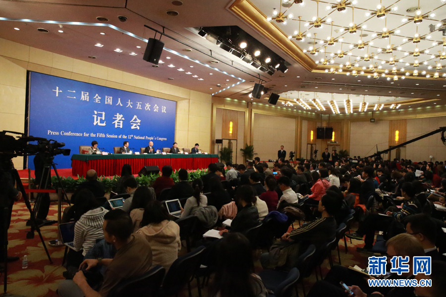 3月14日,十二屆全國(guó)人大五次會(huì)議新聞中心舉行記者會(huì),邀請(qǐng)國(guó)家質(zhì)檢總局局長(zhǎng)支樹(shù)平、副局長(zhǎng)兼國(guó)家認(rèn)證認(rèn)可監(jiān)督管理委員會(huì)主任孫大偉、國(guó)家標(biāo)準(zhǔn)化管理委員會(huì)主任田世宏就“質(zhì)量提升”的相關(guān)問(wèn)題回答中外記者的提問(wèn)。圖為記者會(huì)現(xiàn)場(chǎng)。新華網(wǎng)/中國(guó)政府網(wǎng) 傅義洲 攝