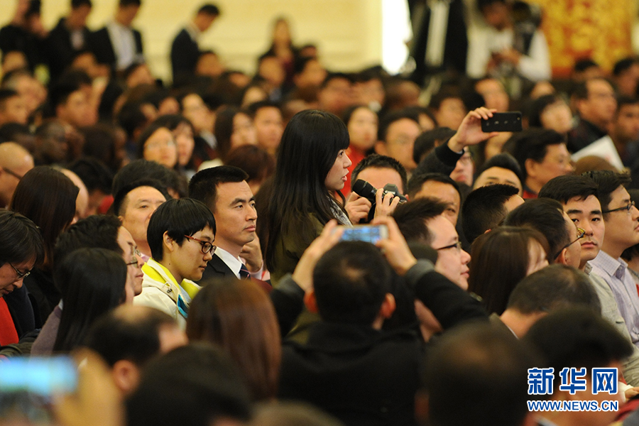 3月15日上午,國務(wù)院總理李克強(qiáng)在人民大會(huì)堂三樓金色大廳會(huì)見采訪十二屆全國人大五次會(huì)議的中外記者并回答記者提出的問題。圖為新加坡聯(lián)合早報(bào)記者提問。新華網(wǎng)/中國政府網(wǎng) 翟子赫 攝