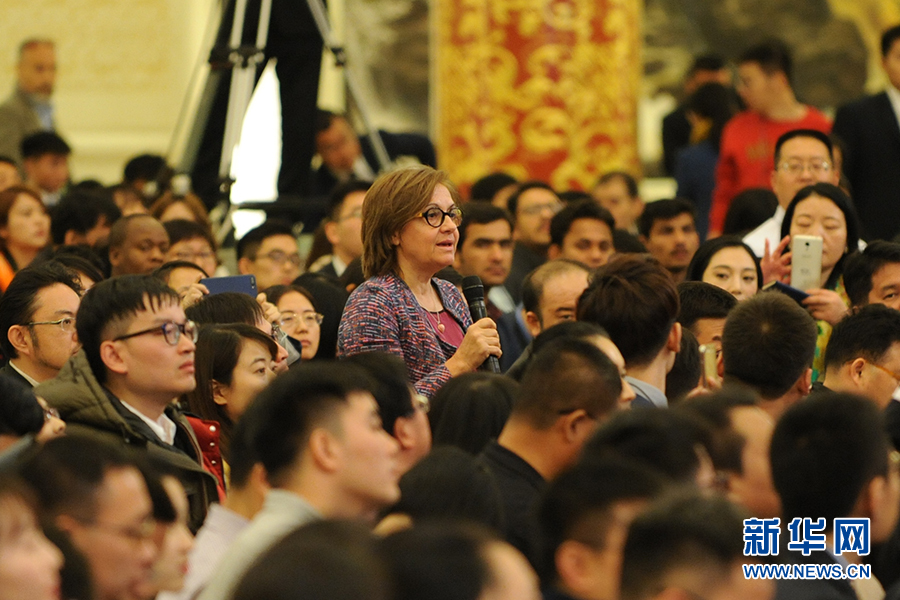 3月15日上午,國務院總理李克強在人民大會堂三樓金色大廳會見采訪十二屆全國人大五次會議的中外記者并回答記者提出的問題。圖為法蘭西廣播公司記者提問。新華網(wǎng)/中國政府網(wǎng)?孫韜 攝?