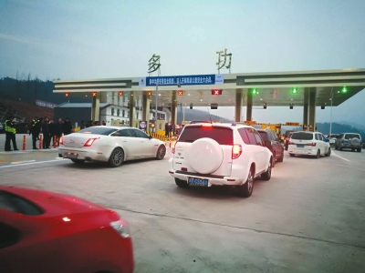 2017年12月31日下午5時許,在雅康高速多功收費站外,雖然高速尚未開通,二十余輛小轎車已排起了隊,等待駛?cè)胙趴蹈咚?。多功收費站位于雅安市天全縣和二郎山之間,主要是為蘆山、寶興方向的車輛設(shè)站,在雅康高速開通前,去瀘定必須翻越二郎山,如今高速開通,15分鐘便可穿越巍巍二郎山。下午6點,雅康高速雅安至瀘定段各收費站準(zhǔn)時向社會車輛開放,標(biāo)志著雅康高速雅安至瀘定段正式試通車。本次試通車的雅瀘段全長95公里,開通4個收費站:多功、天全、新溝、瀘定,ETC同步投入使用;開通天全服務(wù)區(qū),可滿足如廁、臨時加油、停車等基本需求。