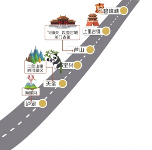 如果到雅康高速自駕,沿線有啥好耍好玩的呢?繼續(xù)往下看!在雅康高速起點雅安市雨城區(qū),除了到碧峰峽看國寶大熊貓、到上里古鎮(zhèn)觀水墨山水,還可以去4A級的中國藏茶村。繼續(xù)往前走,車子一路向西,在多功出口下高速,再沿國道351線繼續(xù)前行不久,便是“漢代文物之鄉(xiāng)”蘆山,有飛仙關(guān)、漢姜古城、龍門古鎮(zhèn)3個4A級景區(qū)。如果從蘆山沿國道351線繼續(xù)走,則到了“熊貓老家,傳奇寶興”。如果在多功收費站不下高速,繼續(xù)向前則是“二郎山下的明珠”——天全。重點來了!二郎山喇叭河景區(qū)毗鄰雅康高速,冬季最適合去玩,看冰雪美景、小熊貓……最后,在瀘定下高速以后,還可以到海螺溝泡溫泉,從瀘定縣城過去,大概有四十分鐘車程。(記者 李智 李逢春)