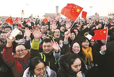 “再堅(jiān)持一下,還有30分鐘。”太陽(yáng)升起前氣溫低至-5℃至-6℃。在等待的人群中,大家相互鼓勵(lì)。7時(shí)25分,“中國(guó),加油!”不知道誰(shuí)在隊(duì)伍里喊了一句,緊接著,一陣又一陣的歡呼聲,一浪高過(guò)一浪,直到升旗儀式開(kāi)始。