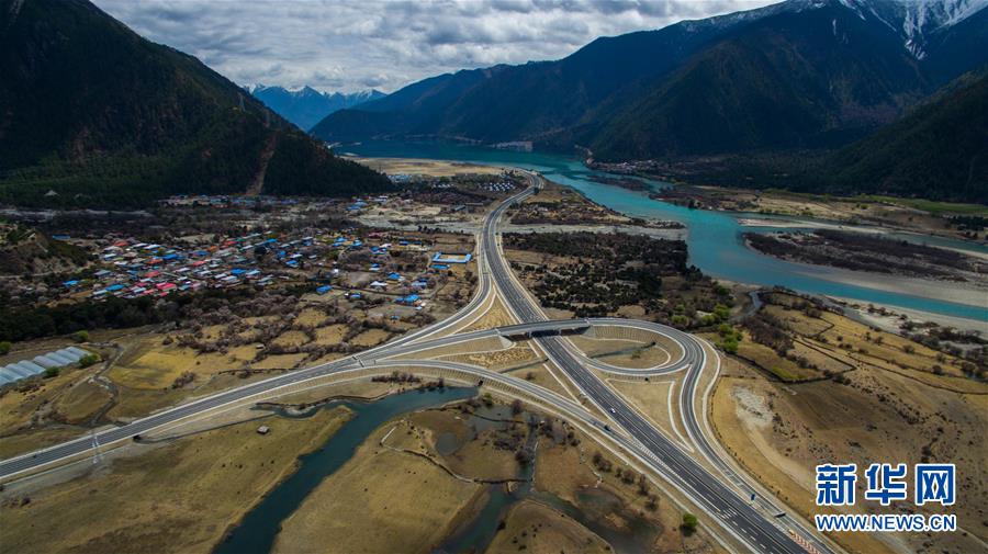 俯瞰西藏林芝境內(nèi)的拉林高等級公路(2016年4月4日攝)。拉林高等級公路起于拉薩市,止于林芝巴宜區(qū)八一鎮(zhèn)。為把拉林高等級公路建設成為生態(tài)通道、綠色長廊、景觀大道,西藏自治區(qū)林業(yè)廳在科學指導和嚴格監(jiān)管下,堅持不破壞、少擾動、多恢復原則,對拉林高等級公路邊坡進行綠化,種植草坪。新華社記者 普布扎西 攝
