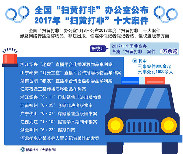 全國(guó)“掃黃打非”辦公室公布2017年“掃黃打非”十大案件