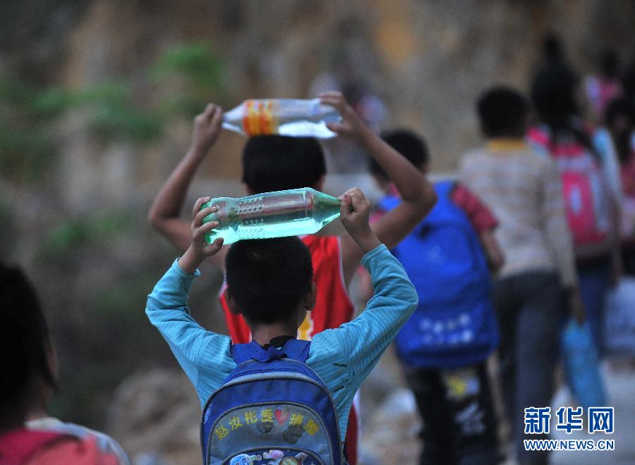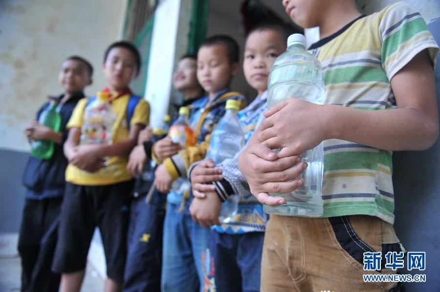 學校附近沒水源,喝水自帶。