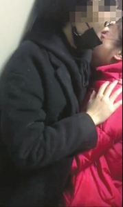 12日凌晨,撿狗女子何某(右)哭著抱住小吳道歉。