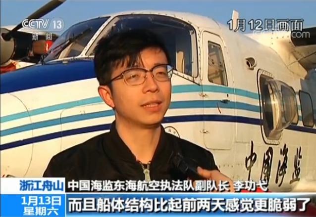 中國海監(jiān)東海航空執(zhí)法隊副隊長 李功弋:通過這幾天的航空觀察,感覺這艘船火勢沒有很明顯的變化,船體結(jié)構越來越脆弱了,碰撞的缺口越來越大了,可能是11日的爆炸所致。