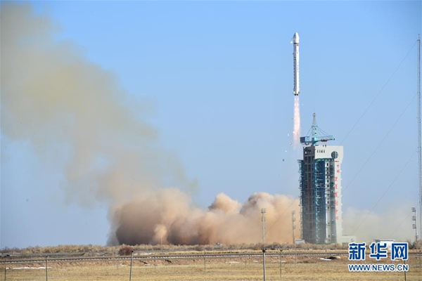 2018年1月13日15時10分,我國在酒泉衛(wèi)星發(fā)射中心用長征二號丁運(yùn)載火箭,成功將陸地勘查衛(wèi)星三號發(fā)射升空,衛(wèi)星進(jìn)入預(yù)定軌道。新華社發(fā)(汪江波 攝)