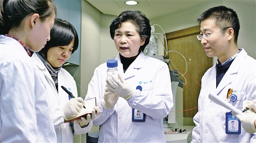 ????李蘭娟院士(右二)和團(tuán)隊(duì)在實(shí)驗(yàn)室工作。 (資料圖片)