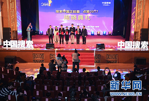 1月19日,“搜索中國正能量點(diǎn)贊2017”活動獲獎企業(yè)代表在頒獎典禮上領(lǐng)獎。當(dāng)日,由中國搜索創(chuàng)意策劃,聯(lián)合多家中央重點(diǎn)新聞網(wǎng)站和北京大學(xué)新媒體研究院共同舉辦的“搜索中國正能量點(diǎn)贊2017”大型網(wǎng)絡(luò)宣傳活動揭曉典禮在北京舉行。此次活動歷時兩月,征集評選出“精彩中國、創(chuàng)新中國、美麗中國、公益中國、品牌中國”五大系列23個熱搜、點(diǎn)贊榜單。新華社記者 李賀 攝