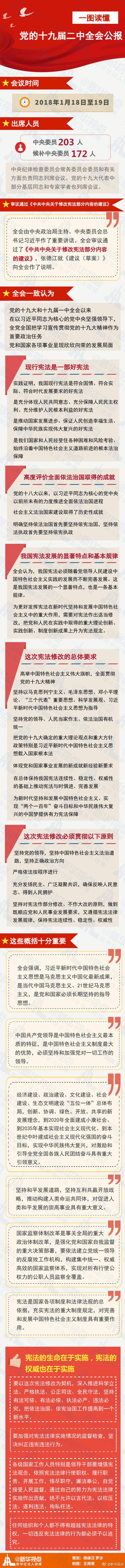新華網(wǎng)北京1月20日電 黨的十九屆二中全會(huì)公報(bào)新鮮出爐,公報(bào)有哪些重要內(nèi)容?這次憲法修改的總體要求是什么?一圖讀懂!(據(jù)新華視點(diǎn)微博)