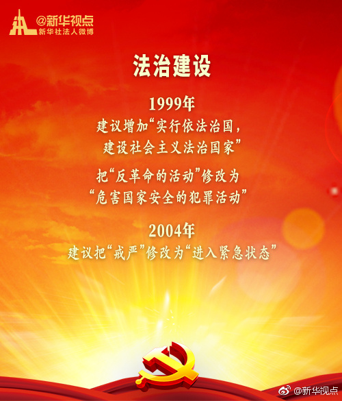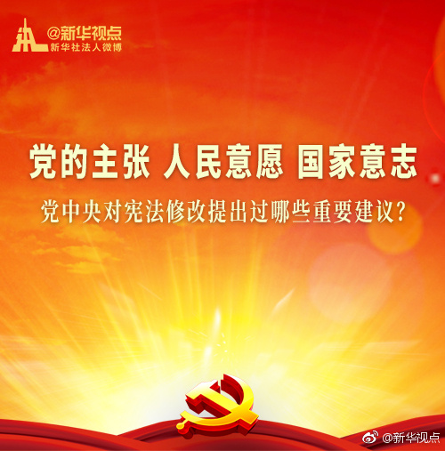 新華網(wǎng)北京1月20日電 黨的十九屆二中全會(huì)1月18日至19日在京召開(kāi),會(huì)議審議通過(guò)了《中共中央關(guān)于修改憲法部分內(nèi)容的建議》?,F(xiàn)行“八二憲法”公布實(shí)施后,根據(jù)我國(guó)改革開(kāi)放和社會(huì)主義現(xiàn)代化建設(shè)的實(shí)踐與發(fā)展,分別于1988年、1993年、1999年、2004年進(jìn)行了4次修改。每一次都是由黨中央向全國(guó)人大常委會(huì)提出憲法修改建議,經(jīng)過(guò)法定程序使黨的主張和人民意愿成為國(guó)家意志。(據(jù)新華視點(diǎn)微博)