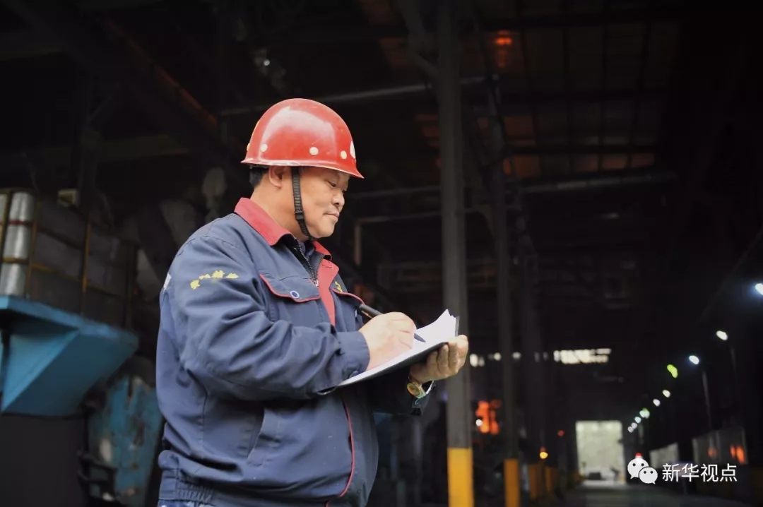 ↑華翔精密熔煉工程師池躍峰在車(chē)間門(mén)口記錄(2017年11月1日攝)。他是一位在熔煉行業(yè)30多年的老鑄工。新華社發(fā)(楊晨光 攝)