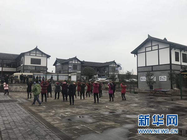 村民們?cè)跁?huì)龍村廣場(chǎng)跳起了歡快的廣場(chǎng)舞。 新華網(wǎng) 張世祥 攝
