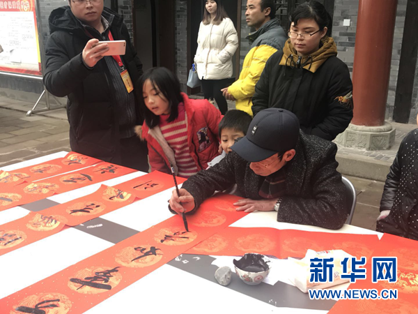 一位村民在寫(xiě)春聯(lián)。 新華網(wǎng) 張世祥 攝