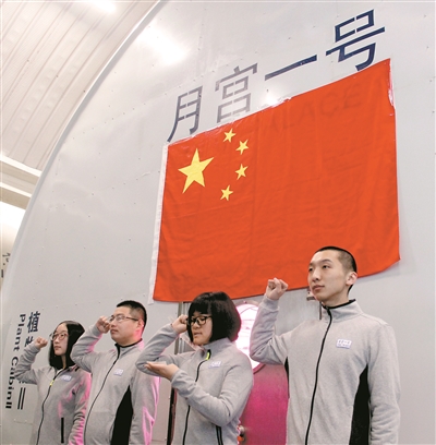 準(zhǔn)備入艙換班的一組志愿者入艙前宣誓。