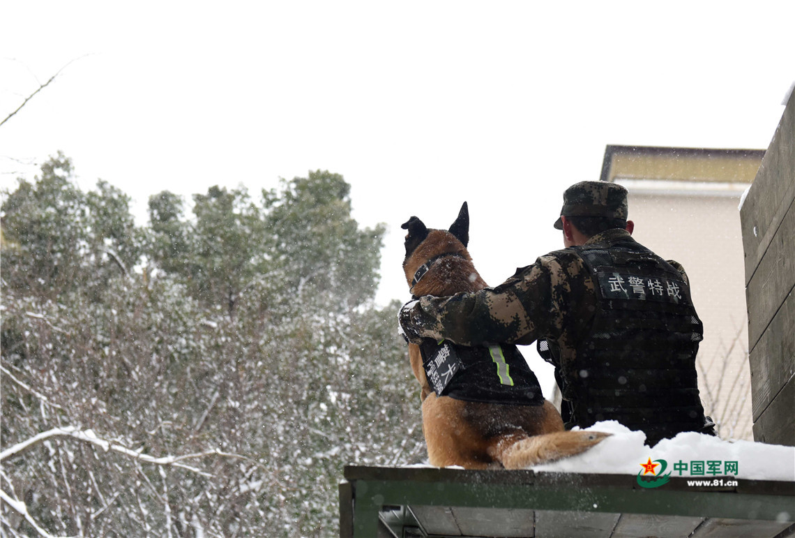 1月27日,武警安徽總隊機(jī)動支隊警犬班班長王營廣與警犬“魯克”互動交流,增進(jìn)情感。