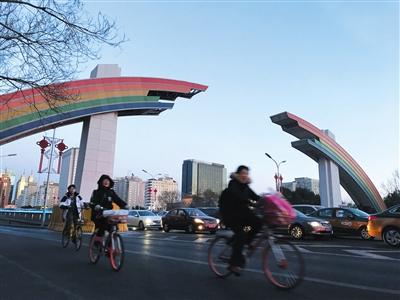 日前,長安街新版彩虹門已安裝完畢。記者了解到,位于復興門和建國門的彩虹門已重建完成,經(jīng)驗收后,可重新亮燈。燈具從霓虹燈改為更節(jié)能的LED燈,除了彩虹的圖案外,未來還可配合節(jié)日主題演示動畫圖案。