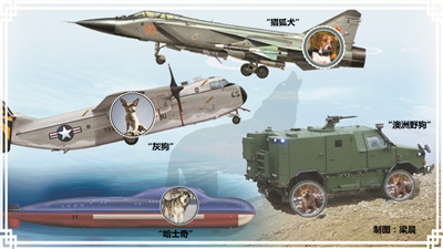 現(xiàn)代戰(zhàn)爭中,偵察通信、巡邏警衛(wèi)、搜救排爆等軍犬的傳統(tǒng)優(yōu)勢領(lǐng)域漸漸被高科技的信息化裝備所替代。不過,為了表達人類對狗的喜愛和依賴,很多武器裝備仍用“狗”或“犬”等字眼來命名。它們上天入地下海,各顯神通,爭雄斗勝,身懷絕技,發(fā)展出兵器家族中的一股“生猛”力量。