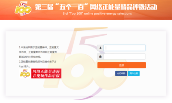 第三屆“五個(gè)一百”網(wǎng)絡(luò)正能量精品評(píng)選活動(dòng)申報(bào)頁(yè)面