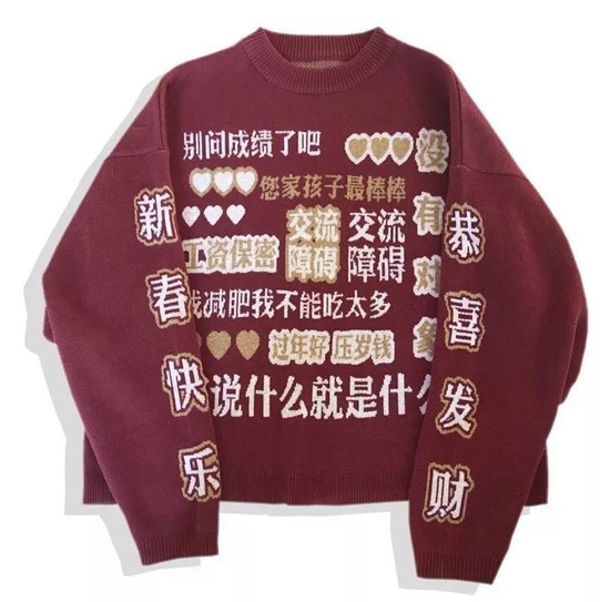 毫無疑問,這件衛(wèi)衣是過年穿給親戚看的,七大姑八大姨關(guān)心的所有問題,標(biāo)準(zhǔn)答案都在身上呢!望周知,請勿繼續(xù)騷擾。