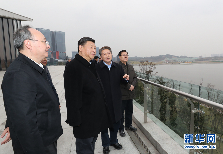 當(dāng)天下午,習(xí)近平從西昌前往成都。一下飛機(jī),便來到天府新區(qū)考察。天府新區(qū)于2014年10月獲批為國家級新區(qū)。習(xí)近平結(jié)合視頻、沙盤、展板,詳細(xì)了解興隆湖生態(tài)治理成果、沿湖產(chǎn)業(yè)規(guī)劃布局、中國(四川)自由貿(mào)易試驗(yàn)區(qū)建設(shè)情況。他指出,天府新區(qū)是“一帶一路”建設(shè)和長江經(jīng)濟(jì)帶發(fā)展的重要節(jié)點(diǎn),一定要規(guī)劃好建設(shè)好,特別是要突出公園城市特點(diǎn),把生態(tài)價(jià)值考慮進(jìn)去,努力打造新的增長極,建設(shè)內(nèi)陸開放經(jīng)濟(jì)高地。