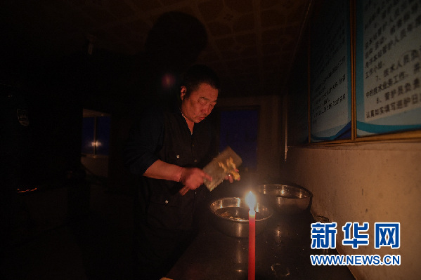 燭光搖曳,白玉華一一清洗凍白菜、土豆和鮮肉,這是他年夜飯的所有食材。這幾天喝水成了問(wèn)題,用的水是他從20公里之外的河溝中鑿取的冰塊。兩天前,站上的柴油發(fā)電機(jī)壞了,不能抽取井水。大雪封山,車行困難,機(jī)器無(wú)法維修?!斑@機(jī)器也知道過(guò)年給自己‘放假’。”白玉華苦笑地?fù)u搖頭。