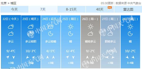 近日,京城暖意融融。預(yù)計,今明天(22-23日)最高氣溫可達(dá)10℃,但后天起,冷空氣“上崗”,屆時最高氣溫將下降6℃。氣溫多變,公眾勿急著換上春裝,仍需注意防寒保暖。