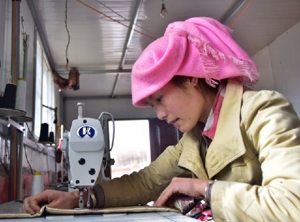 記者在村民文昌多吉的作坊里看到,地上鋪滿待剪裁的布料,幾臺裁縫機(jī)整齊擺放著。冬日的暖陽透過玻璃窗照射進(jìn)來,多吉和妻子一人負(fù)責(zé)剪裁,一人負(fù)責(zé)縫紉。而平時他家有5個人做,最多的時候一天可掙1000元,相當(dāng)于過去種地一年的收入。