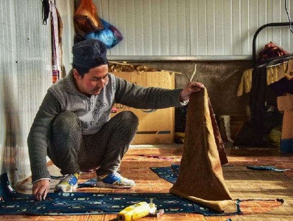 村里人見老旦生意做得風(fēng)生水起,紛紛前來取經(jīng)。老旦也毫不保留,先是親友,之后親友帶親友,不到兩年,松多村二社的40多戶村民幾乎家家都開起了家庭小作坊。就連村上的殘疾人才桑卓瑪一家4口人,老旦手把手教了半年后,也能獨立接活了。