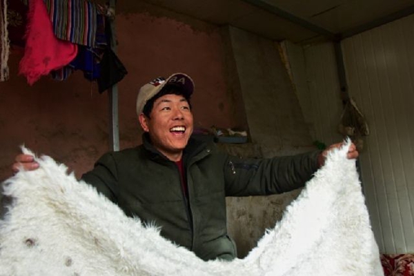 松多村鑲嵌在縣城城郊一條干涸的河谷上。這里干旱少雨,風(fēng)吹黃土漫天,只能種些青稞、土豆為生。“那時我們家8口人,住的是土坯房,吃的是洋芋,人均耕地面積不足2畝,一年種的莊稼連來年買肥料的錢都不夠。”小學(xué)還沒畢業(yè),旦增加就輟學(xué)在家,重復(fù)著父輩的生活,不到20歲就結(jié)婚生子,同樣靠種地維持生計,日子卻越發(fā)捉襟見肘。