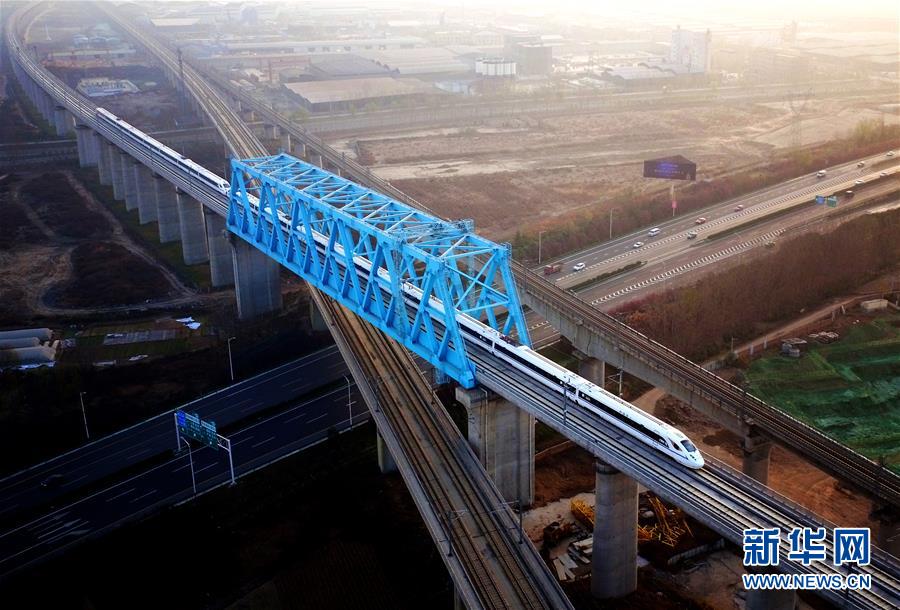 2017年12月6日,西安至成都高速鐵路全線開(kāi)通運(yùn)營(yíng),由西安北站駛出的列車(chē)經(jīng)過(guò)西成高鐵跨西寶高鐵特大橋。 新華社記者 劉瀟 攝