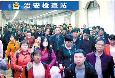 昨日,廣州火車站旅客出口通道客流。廣州日?qǐng)?bào)全媒體記者廖雪明 攝