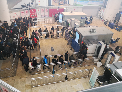 在北京某高鐵站一進(jìn)站口,春運(yùn)前夕的候車(chē)乘客擠滿了隔離欄列成的“九曲十八彎”,等待安檢長(zhǎng)隊(duì)中的旅客熙熙攘攘。而旁邊封閉的安檢通道上,兩臺(tái)安檢設(shè)備閑置。人流隊(duì)伍日漸擁擠,有旅客因?yàn)榈却患埃庇谶M(jìn)站,與安檢人員發(fā)生爭(zhēng)執(zhí)。