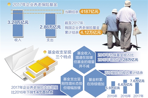 如何看待當(dāng)前我國社?;鸬氖罩毫??游鈞表示,隨著我國進入經(jīng)濟新常態(tài),特別是人口老齡化的加速推進,我國的社會保險,特別是養(yǎng)老保險也進入了一個新的發(fā)展時期,基金收支呈現(xiàn)新特點:一方面,雖然基金收入增速在放緩,但是基金增量不減;另一方面,雖然基金支出呈剛性增長態(tài)勢,但是增幅在放緩;此外,基金積累也在持續(xù)增加。數(shù)據(jù)顯示,2015年,我國五項社?;鹄塾嫿Y(jié)余為5.9萬億元,2016年達到6.6萬億元,2017年達到7.6萬億元。