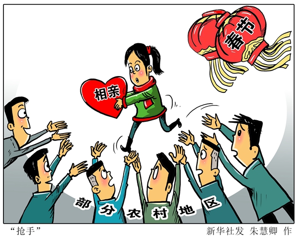 春節(jié)期間,我國不少農(nóng)村地區(qū)出現(xiàn)“相親熱”?!靶氯A視點”記者在山東、湖北、安徽等地鄉(xiāng)村調(diào)查發(fā)現(xiàn),農(nóng)村大齡男青年結(jié)婚難問題突出。