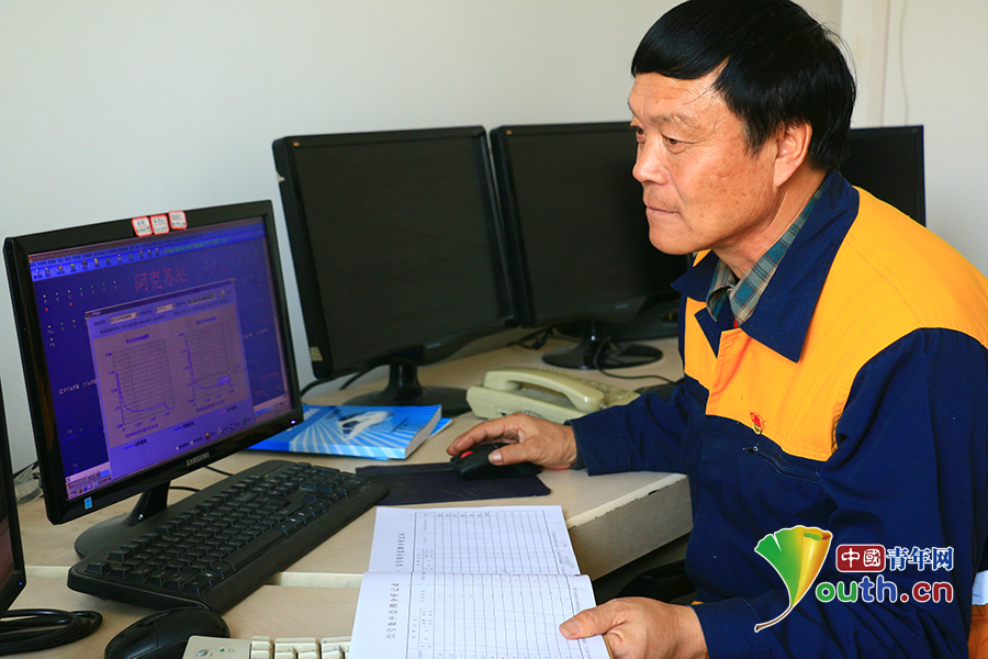 邰芳鵬年近60歲,雖然體力上不如年輕人,但他從來不服輸。如今,南疆鐵路已升級(jí)為計(jì)算機(jī)聯(lián)鎖設(shè)備,邰芳鵬也緊跟時(shí)代步伐,學(xué)習(xí)計(jì)算機(jī)操作。現(xiàn)在他對(duì)計(jì)算機(jī)監(jiān)測(cè)設(shè)備也能進(jìn)行熟練操作和分析。中國青年網(wǎng)通訊員姚旭東 攝