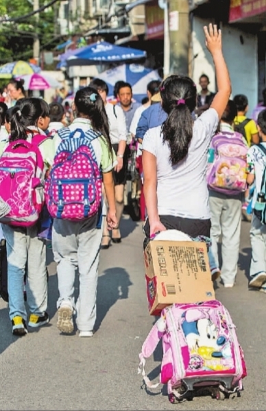 武漢市武昌區(qū),小學(xué)生們拖著沉重的書包放學(xué)回家。新華社記者 肖藝九攝