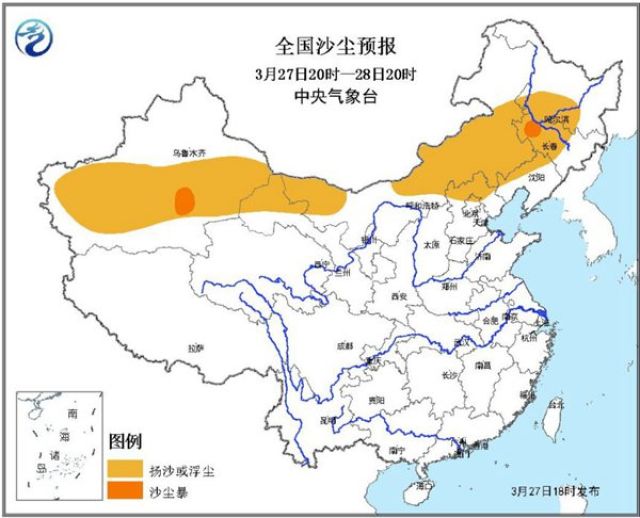 預(yù)計(jì)27日20時(shí)至28日20時(shí),受大風(fēng)天氣影響,新疆南疆盆地、內(nèi)蒙古、甘肅西部、遼寧西北部、吉林西部、黑龍江西南部、河北北部、北京北部等地的部分地區(qū)有揚(yáng)沙或浮塵天氣,其中新疆南疆盆地、吉林西部等地局部有沙塵暴。