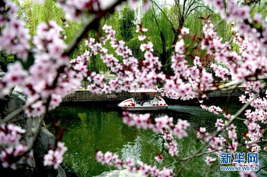 3月28日,游客在鄭州市人民公園泛舟。春天的鄭州氣象更新、萬物復(fù)蘇,在春意盎然的人民公園內(nèi),游人乘輕舟暢游賞花,享受美好春光。 新華社記者朱祥攝