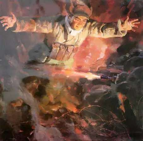 陣地已毀,彈已盡,援已絕。優(yōu)勢的敵軍正踩著被鋼與火耕耘了一遍又一遍的陣地,就要上來了。他或許會很平靜地掏出了摯愛的鋼筆,擰開筆帽,在一本筆記本上寫了些什么。時間是那么有限,他或許還沒寫完,還沒有蓋上筆帽,一顆子彈或者一塊彈片令他失去意識,從此與陣地化為一體。