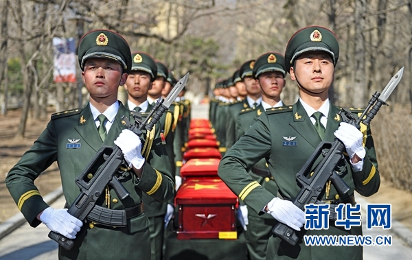 3月28日上午,中韓雙方在韓國仁川國際機場莊嚴舉行第五批在韓中國人民志愿軍烈士遺骸交接儀式。民政部副部長高曉兵率代表團出席交接儀式,中韓雙方代表現(xiàn)場簽署交接書,確認交接20位中國人民志愿軍烈士遺骸及相關遺物。中方現(xiàn)場舉行悼念儀式后,中國駐韓國大使邱國洪為志愿軍烈士遺骸覆蓋國旗,隨著高曉兵副部長“祖國接你們回家!”的呼喚,全體中方人員向志愿軍烈士三鞠躬,中國人民解放軍禮兵護送烈士遺骸登上空軍專機,啟程,回國。解放軍空軍專機進入中國領空后,兩架戰(zhàn)斗機全程護航,用空軍特有的方式向志愿軍烈士致敬。專機抵達后,組織實施了莊重的迎接儀式。