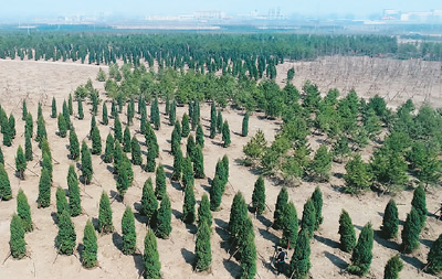 苗景兼用林的樹,其中相當(dāng)一部分將種在“千年秀林”中。作為雄安新區(qū)已經(jīng)啟動(dòng)的兩大工程之一,“千年秀林”已有上萬畝規(guī)模。從容城至雄縣的路上,路邊遍是精心栽植后,用木棍撐著的小樹苗。