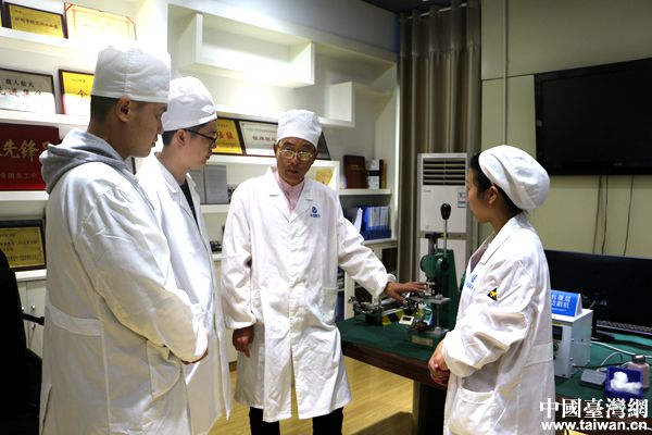 “共祝愿祖國好”六字醒目的掛在工作車間墻壁上,這是他們長期以來堅守的信念。(中國臺灣網(wǎng) 盧佳靜 攝)