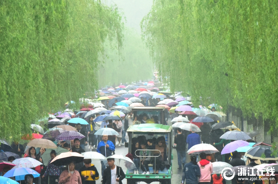 杭州:清明時節(jié)雨紛紛 西湖游客雨中游